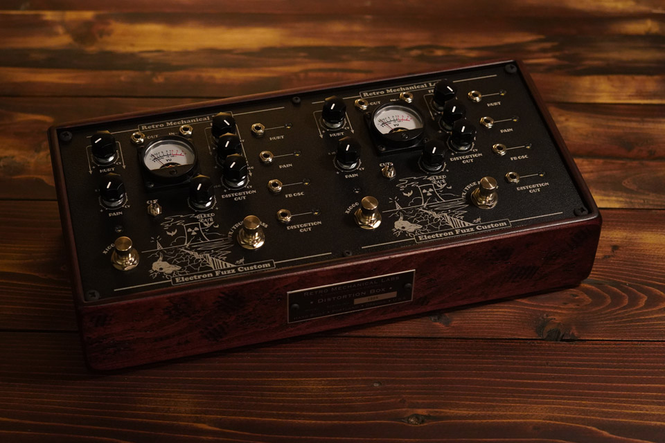 The red LED switches on when boost mode is enabled. A convent way to know where you are when playing. • Knob controls: A unique approach to tone control… Hurt: Controls the gain of 3rd gain stage. Lowering the gain will also reduce low end. Pain: Controls the gain of the 2nd transistor gain stage. Lowering the gain will reduce high end. Output: Volume/saturation. Take some of the edge off the mix or crank the pain and hurt all the way for a big, dirty, crunchy fuzz. FB Noise: Adjusts the amount of feedback in the circuit for noise making. Creates a weird octave mod fx.• Switch controls:Low cut toggle: Cuts the low end for a slightly less bassy more gated sound. x1000 gain: On left stomp switch. This takes your sound through an addition 2 transistor gain stages and pushes the electrons way past 11! The booster switch adds a loud and dirty, thrash crunch to this versatile pedal. Incredible for feedback noise and FX textures. Can cause the parasitic frequency oscillation but sounds awesome while playing. True Bypass: Lets you play through the pedal. • Meter: Responds to your playing, and reflects first gain stage transistor distortion. Illuminates when active.